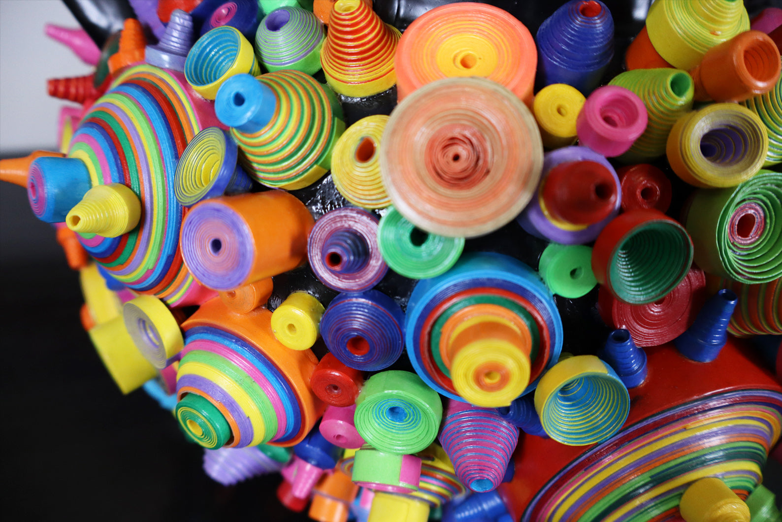 All our products are made from hand-rolled and shaped paper strips. For their finishing or protection we use water-based varnishes and solvent-free resins. Our finishes are not applied by spraying, so we do not pollute the environment or waste material.