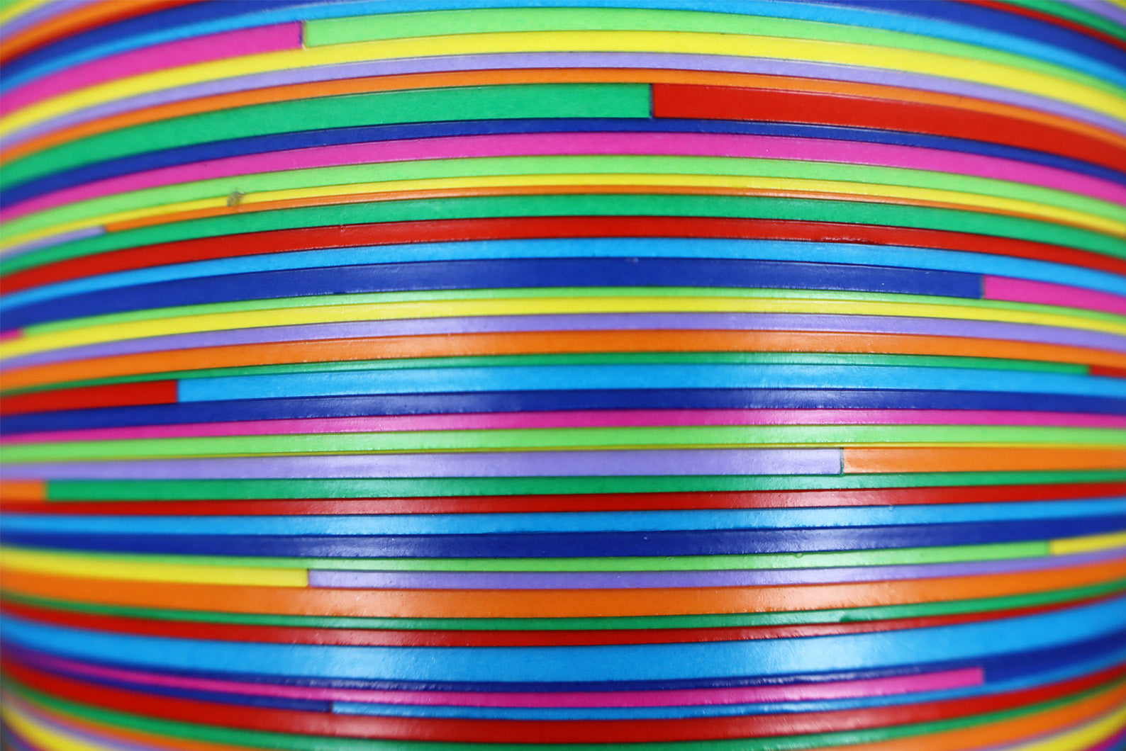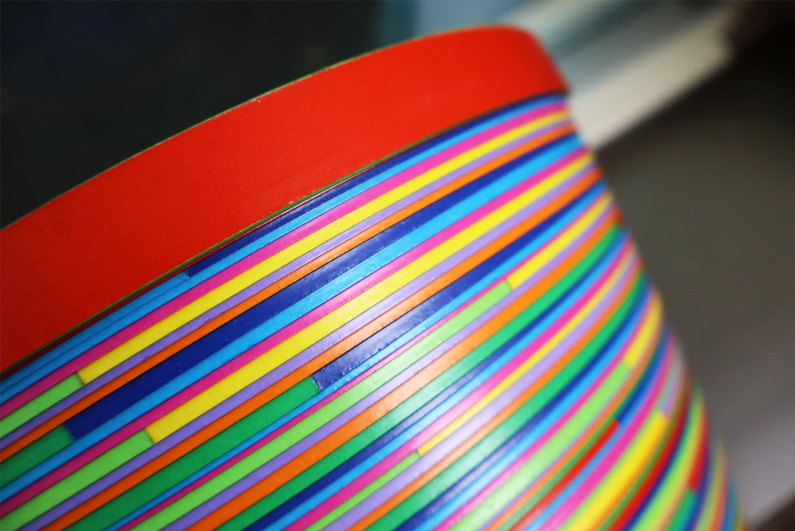 All our products are made from hand-rolled and shaped paper strips. For their finishing or protection we use water-based varnishes and solvent-free resins. Our finishes are not applied by spraying, so we do not pollute the environment or waste material.
