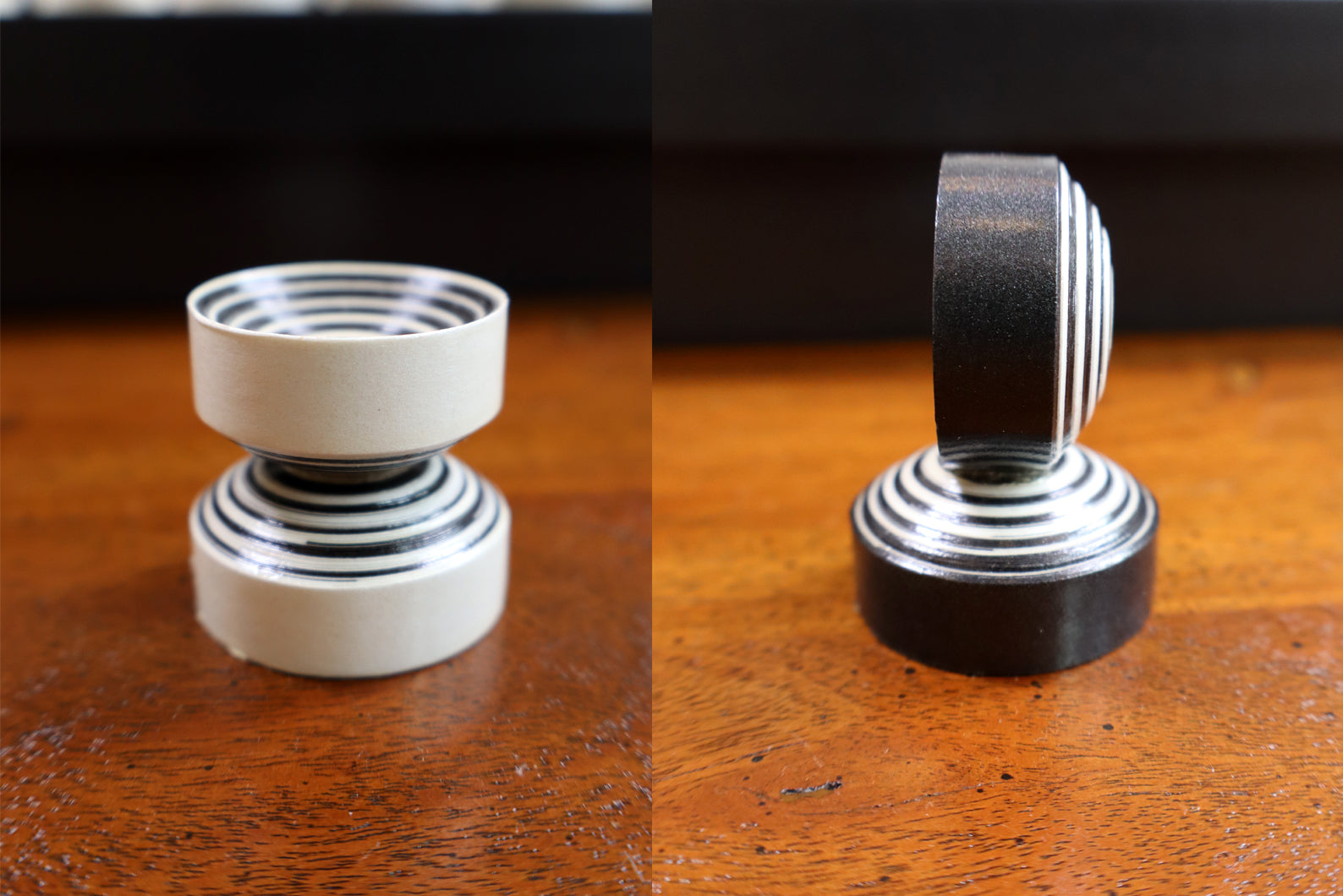 All our products are made from hand-rolled and shaped paper strips. For their finishing or protection we use water-based varnishes and solvent-free resins. Our finishes are not applied by spraying, so we do not pollute the environment or waste material.