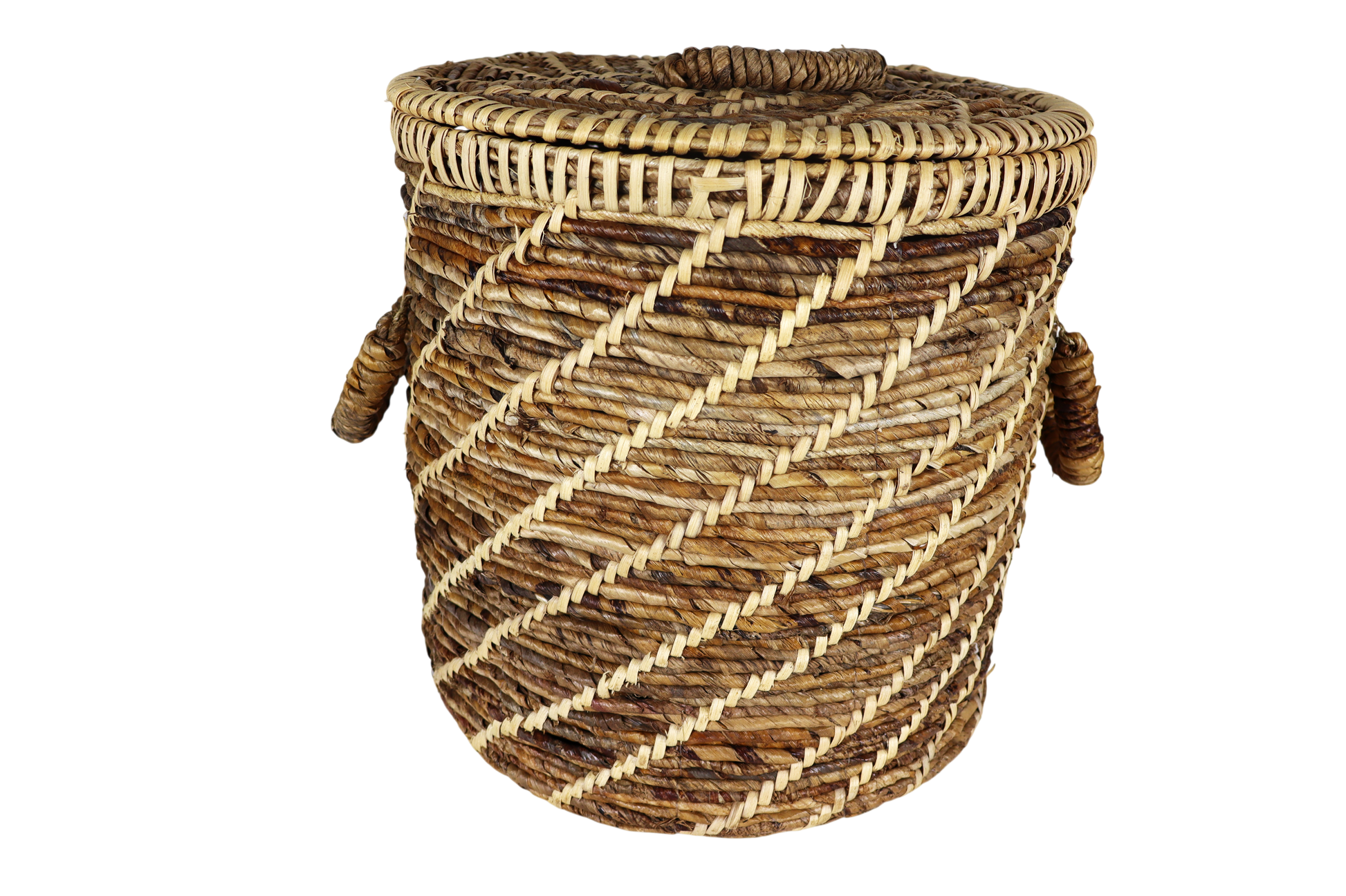 Thick braids of rustic banana leaves weave a richly textured basket, ready to hold toys, towels and more. The sturdy handles are soft to the touch, yet strong enough to carry stored items. This casual storage option adds a warm, natural touch to any room.