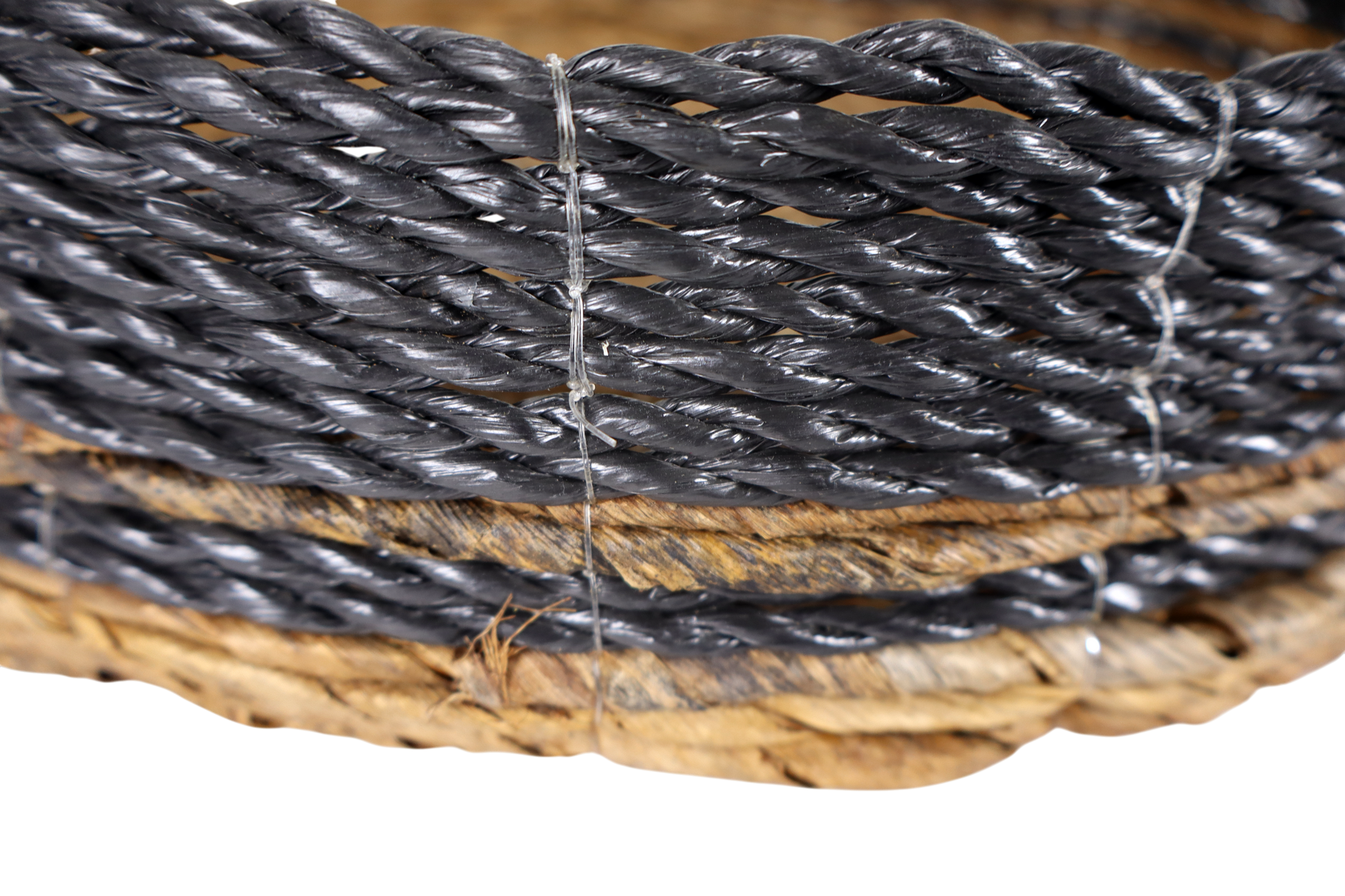 Braids of rustic banana leaves weave a richly textured basket, The sturdy handles are soft to the touch, yet strong enough to carry stored items. This casual storage option adds a warm, natural touch to any room.